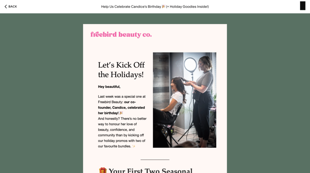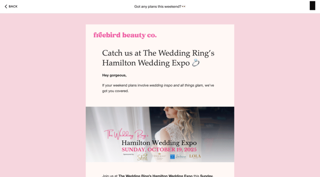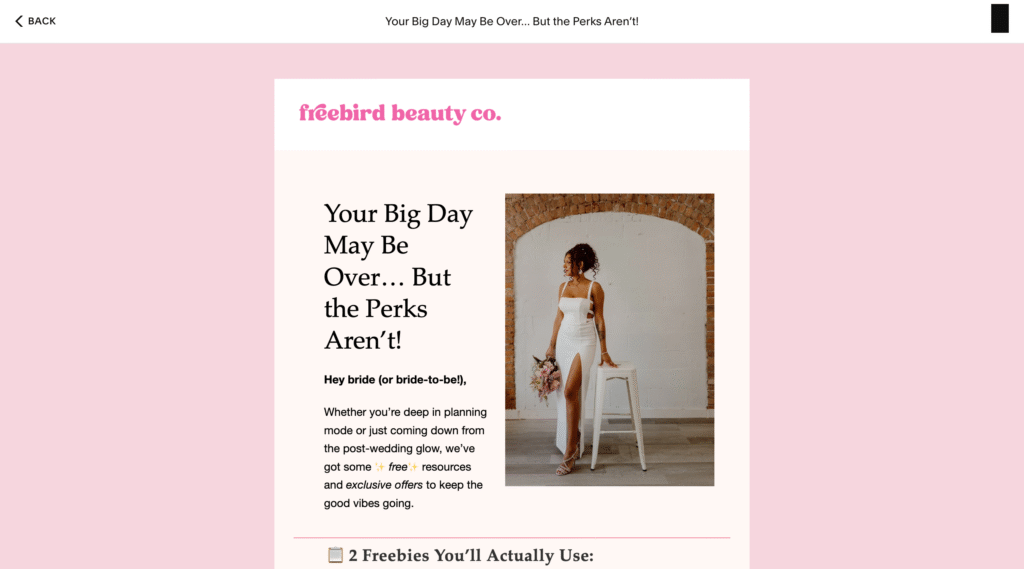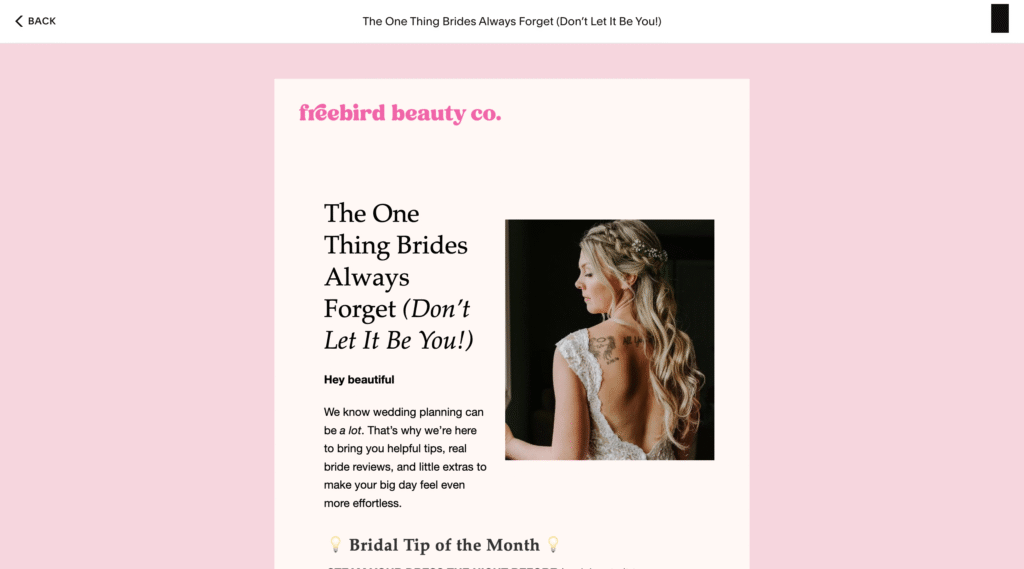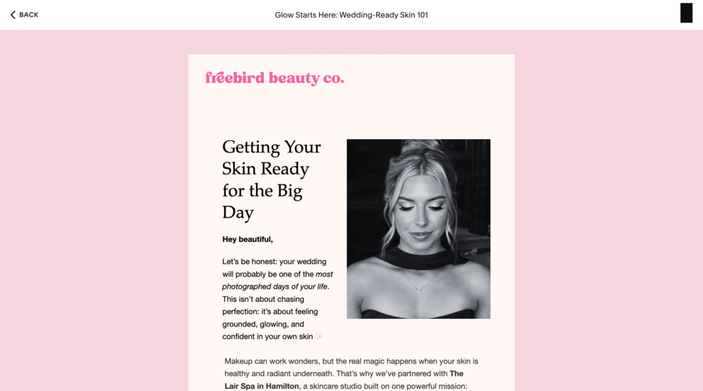 Bridal makeup artists and hair stylists Lindsey and Candance, owners of the brand Freebird Beauty Co. (@freebirdbeautyco), were looking for fresh ideas for their Instagram (3,810 followers) and her email list (nearly 2,000 subscribers).